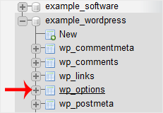 4. Select the appropriate table you want to edit. If you wish to change the blog name of WordPress, then select "wp-options".